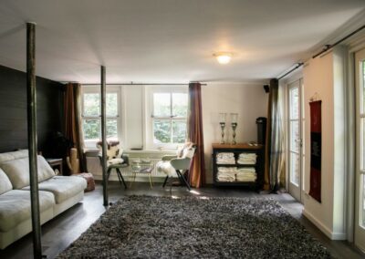De Tinusboom heeft een landelijke uitstraling en biedt ruimte voor 12 deelnemers om te overnachten. Je hebt toegang tot de sfeervolle tuin met vrij uitzicht over het naastgelegen landgoed en de vijver staat in open verbinding met riviertje de Alm. Het is een plek waar je thuis kunt komen, waar je op ontdekking kunt gaan en waar je jezelf kunt verbinden met jouw kern.